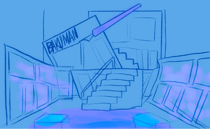 バクマンの舞台セットおもしろ…とうる覚えだけど パースは…狂ってるので…キュビズムを感じてください