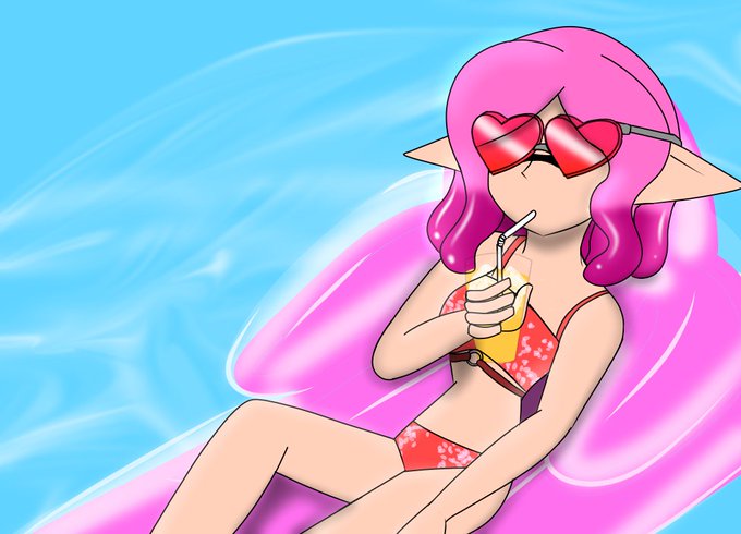 Cherie just vibing and enjoying the water and her floatie! ^^