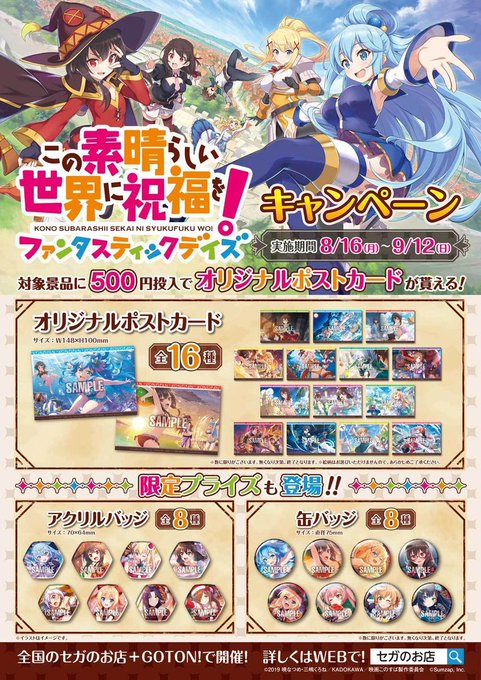 本日より『この素晴らしい世界に祝福を!ファンタスティックデイズ プライズキャンペーン』が開催!