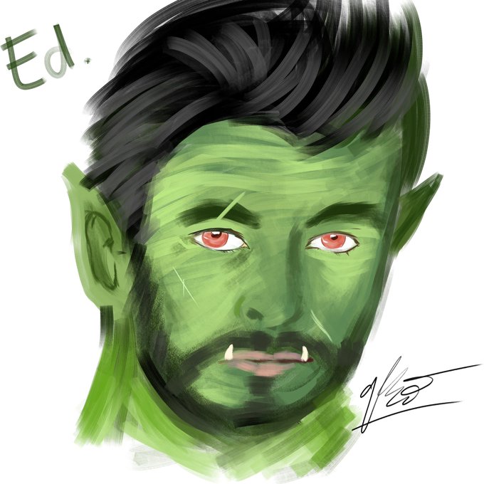 Redesigned Edorias Hertyr, or just Eddie for short. He's my half-orc bloodrager PC in our upcoming campaign! #dnd #dndart #pathfinder #halforc #originalcharacter #OC #ttrpg #characterdesign Retweets are appreciated!