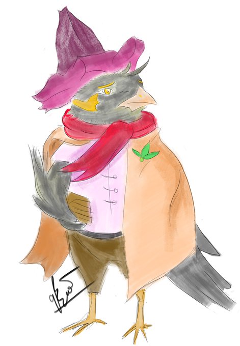 Yllus Echo, a young mute tengu bard. He plays a Kalimba. #dnd #pathfinder #DnDcharacter #dndart #ttrpg #tengu #kenku #bird #bard