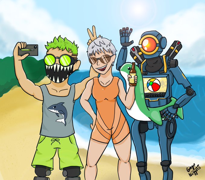 I drew Valkyrie, Octane and Pathfinder at the beach! #ApexLegends #Octane #Valkyrie #Pathfinder #ApexLegendsFanart