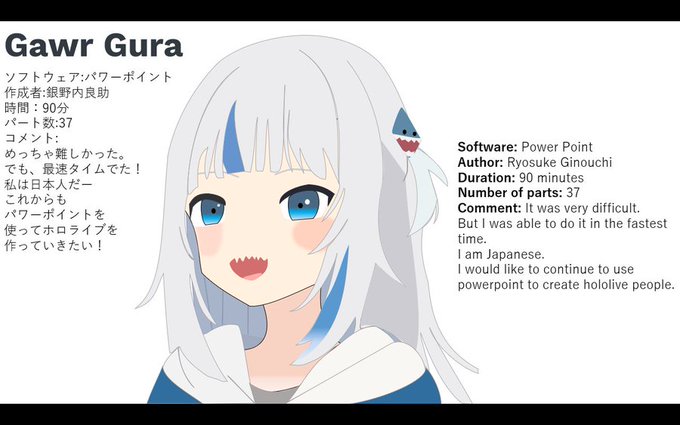 I made gura. I made by PowerPoint. #gawrt #パワーポインター銀 #パワポで作った I often made like this. 下手な英語でゴメンネ