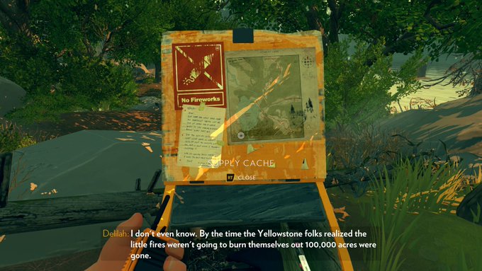 Firewatch! A visually stunning game, where you escape out to the woods to be a firewatcher in the wild. You get to explore your surroundings and bond with another firewatcher, but you Will start feeling paranoid 👁👁 Interesting story, only minus for being a little too straight