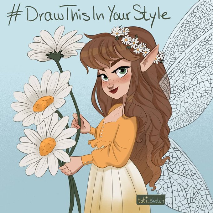 Desde que vi el otro día este #dtiys tenía ganas de dibujar esta preciosa hada. Ayer me puse a ello y así me ha quedado el #drawthisinyourstyle de @tati_sketch. 😊✨