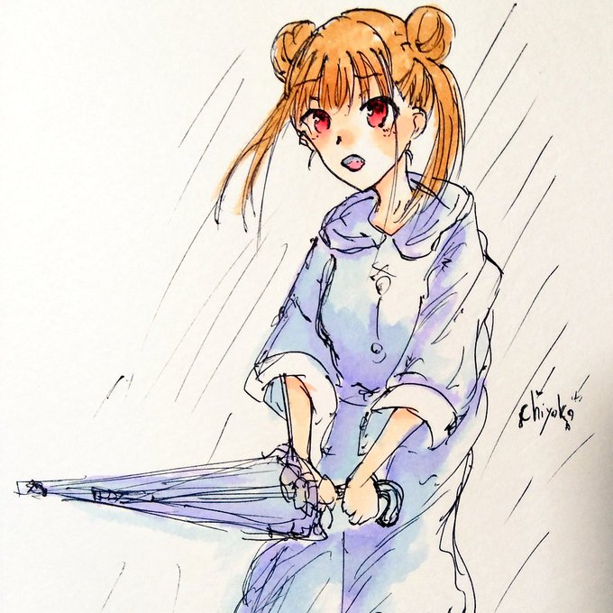76にちよこ 雨の日のレインコートキライ(´・ω・`)智代子はレインコート好きなのかしら?私の画力では追いつかない可愛いレインコートとか持ってそう... #いちにちいち智代子