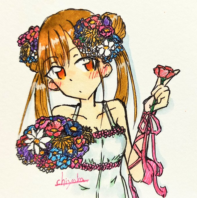 思ったよりこれまでに智代子とお花を一緒に描いたことなかったっぽい💐 これ以外にあと3~4枚くらいしかなかった