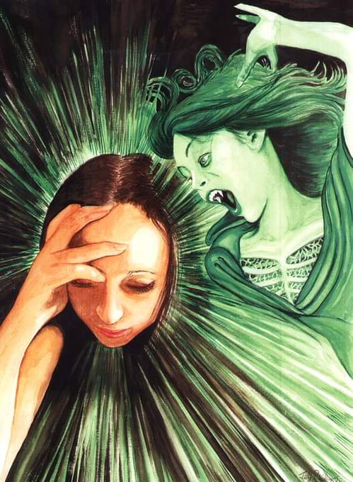 Keeping in with the #Halloween #mythology theme, here is an illustration of the green lady, Scottish #Ghost Glaistig, stories have her luring men to her lair via either song or dance, where she would then drink their blood and roaming Celtic castles #art #Halloween2020 🧛♀️👻