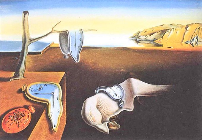 "Mistakes are...of a sacred nature. Never try to correct them. On the contrary: rationalize them, understand them thoroughly" #salvadordali 👁🗨 Persistence of Memory (1931) 🎨 #quoteoftheday #painting #surrealart