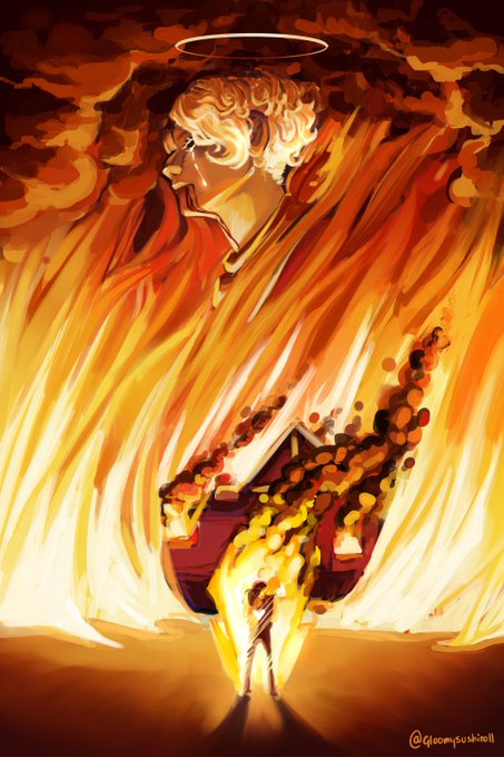 "Manifold's Symphony" This is the scene from the stream when Jack Manifold burns his house, setting himself on fire as well after discovering that tommy had died. On the right the original B&W thumbnail I did.