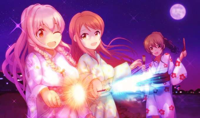 「花火というものは見上げるものだとばかり思ってました……」 #西園寺琴歌 #北条加蓮 #堀裕子