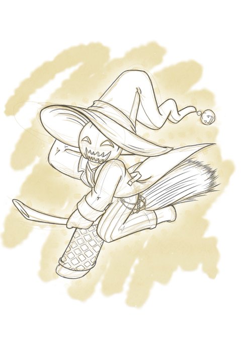 @BrooksieCFonta1 @sygnin They’ve turned into a recurring doodle for this time of year for me ☺️ haven’t gotten around to fully colouring the broom ride but got this one of em coloured up from a sketch I did last year. Think I wanna find more hijinks for them to get up to 🤔