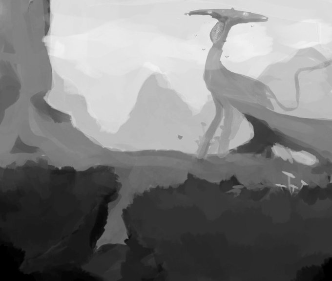 @t_anairo Antes que nada te muestro los cambios que hice. Las montañas obstruian mucho la vista, era un poco sofocante. Los ongos de en frente los hice mas grandes para que den la sensacion de estar mucho mas cerca a la "camara" y que se entienda que son pequeños en comparacion