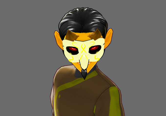 Actual proper art of my D&D character Key the tiefling. Why doesn’t he have horns if he’s a tiefling? Same reason he’s wearing a mask. ouo