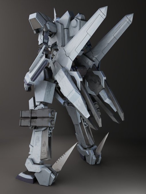 ロボできました。空戦型。 武装は大型マシンガン、胸部ガトリング、ミサイル、ヒートナイフ。 近接時には足のヒートナイフを刺したりする。 速いけど超脆い。