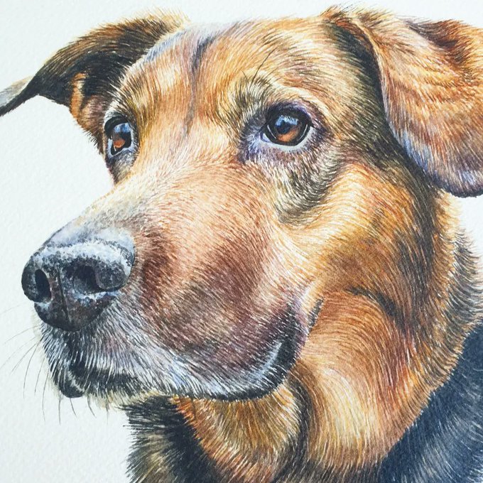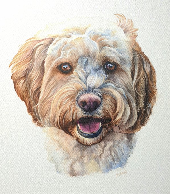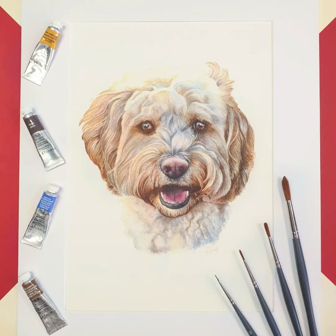 This pet portrait painting in watercolour has now arrived at it's forever home!