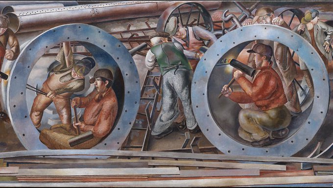Robert Wyatt - Shipbuilding (Rough Trade, 1982). The picture sleeve features a detail from a painting by Stanley Spencer.