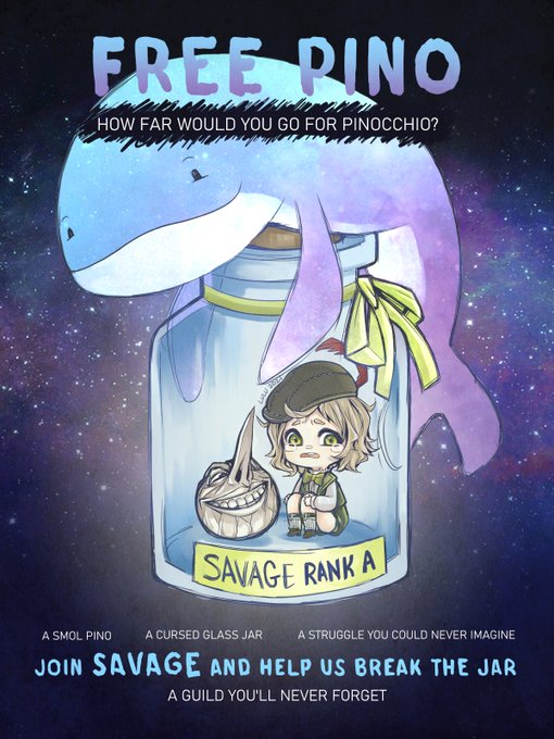 Moar meta-game fanart made for #SINoALICE because our guild has inside jokes n' memes. I had a lot of fun making this parody recruitment poster! #SINoALICEFanart #freepino