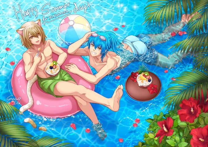 Summer time at the beach with Konoe and Aoba! 🍹🐈💙