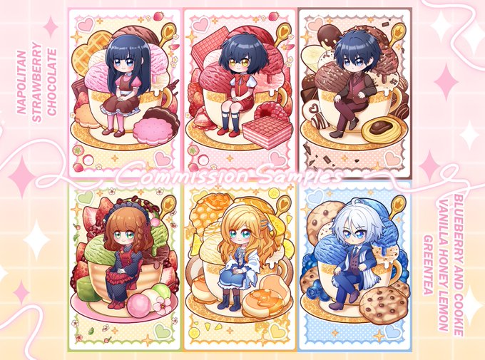 Offering cute chibi illustration in six variation of flavors! Please contact me through DM if interested. RT/❤️ is deeply appreciated! Thank you~ 🙏