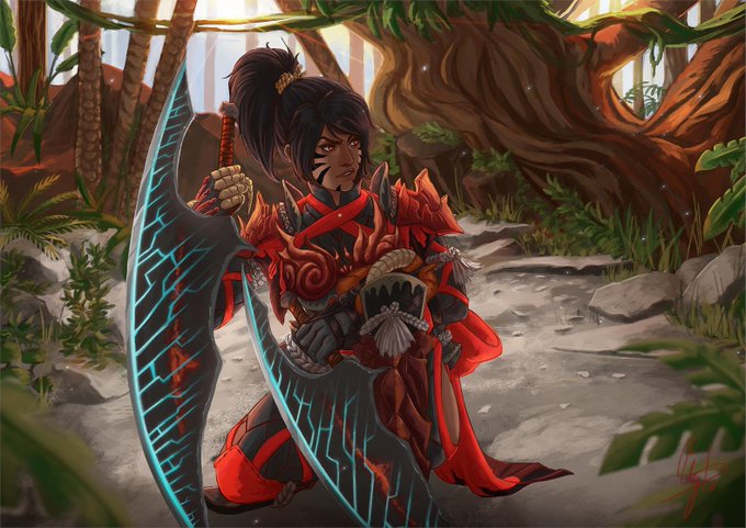 Another #MHW commission done! This one for @DevilTrigger_38 of his lovely fierce lady. :3 Bonus cat ear version!