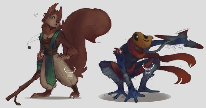 So here they are! Wavebreaker troop, Rhas longpaw and Elliot. Rhas is the soul of the group, always smiling and cheering, a fun guy to have around, Elliot, in the other hand, is a shy guy but with a brilliant brain, he's the one who fixes the guns on the ship.