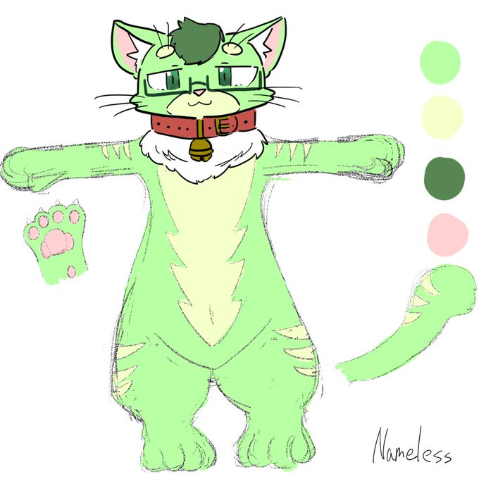 時折出没する緑色のネコチャン。彼は私の代理兼うちの子で、名を「ネムレス(Nameless)」と言います。実は設定が山盛りあったりもしますが、あまり深い事は考えず可愛がってやってくだせぇ…私が喜びます() https://t.co/3RMXPjM0Wg