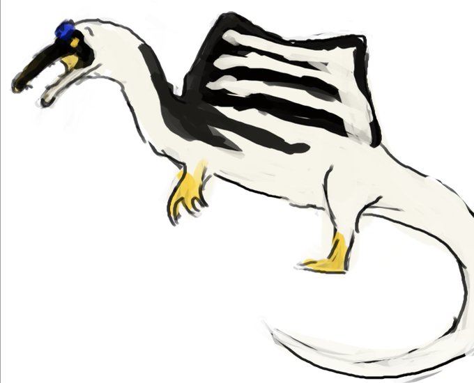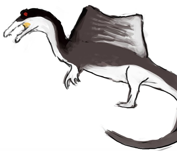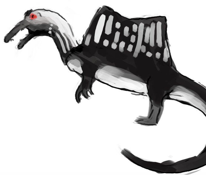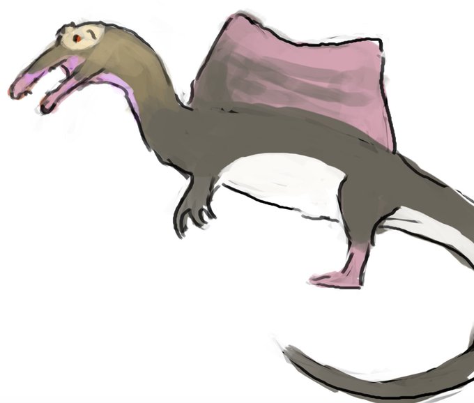 My contribution to #Sundayfishsketch is kinda cheating? It's a little snippet from a print I'm working on (happy Spinosaurus family!)