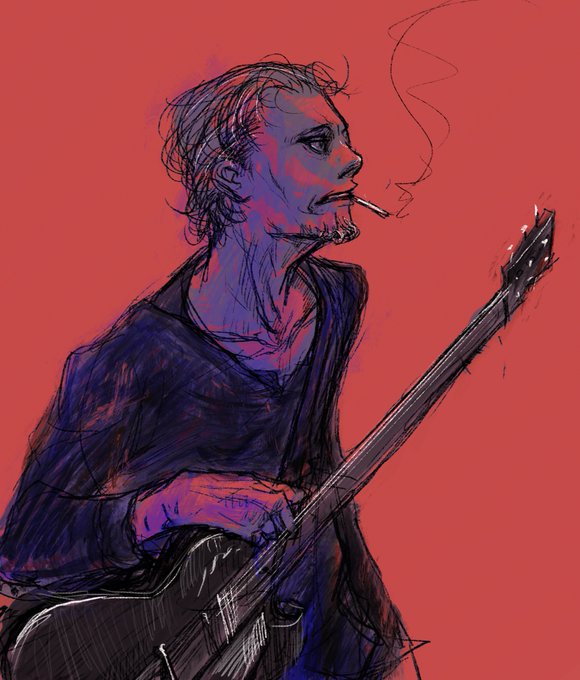 #ヒゲ版深夜の真剣お絵描き60分一本勝負 【ギター/guitar】 BGM:涙がこぼれそう/TheBirthday
