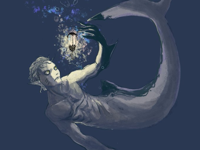 #短髪男子版深夜の真剣お絵描き60分一本勝負 お題「人魚」「ランプ」