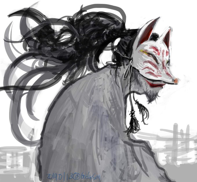 #長髪男子版深夜の真剣お絵描き60分一本勝負 お題「マスク」 BGM:白無垢/Jeepta