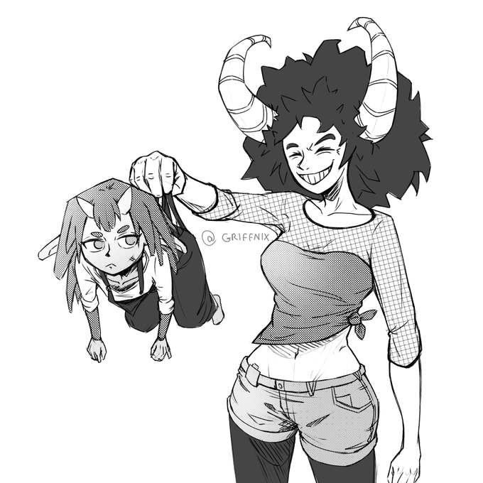 #OC #character #design #horns #fantasy #art #sketch #artistsontwitter #oni #demon #redhair #sketch #dungarees #overalls #twitterartist