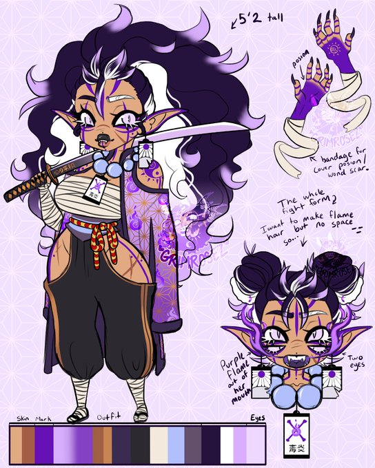 I did it my own demon slayer sona I don’t have her name yet so and sense my friend say poison I kinda like idea so she like flame and poison. I will draw her whole body full with make so stay tune and now more art