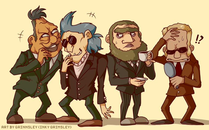 My favourite characters from the Lost Future are The Family! Their designs are truly out of this world, and I love how unique each gangster is, with their own quirky personality. They're so fun to draw, too! #Layton3illustration @LaytonSeries
