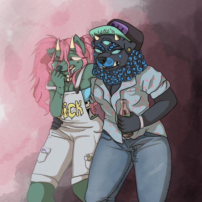 @FablionWasTaken :0 @Badkittyamy s Fu dog and my zombie bish Dey girlfrands. Dey happy.
