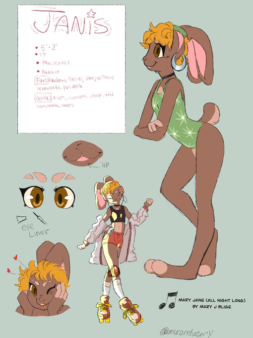 My dudes I finally made an official herbivore oc. I love her she's precious BTW she dyed her hair that color its actually a dark brown that is almost black. Also the song in the corner is what she sounds like. And don't worry bout the info up there. She 17 #Procreate #furryart