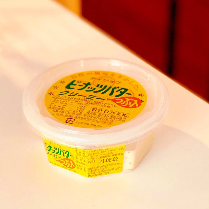 ダイショウのピーナッツバター(甘さひかえめ)が好きすぎてリピーターと化してます。 美味しいのはもちろん、この鮮やかな黄色のパッケージが最高に可愛い。落ち着いた緑、刺さるような赤色も良い。 グッズがあったら欲しいレベル…。