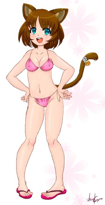 Lucky lil boy hehehe, he enjoys being at the feet of the giant "Nekozilla", now imagine a kiss between the two.