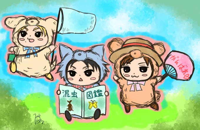 夏の愛すべきスリボ リクリバーちゃんは二人のために虫捕まえようとしてて、カズマルフくんは戦略型、ホクプーちゃんは応援です。