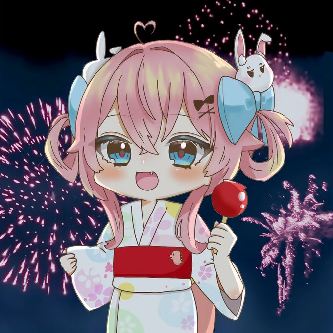 夏祭り🎆🏮 (花火のみ素材使用) 夏祭りの時のももちゃんがとっても可愛かったので描いてみました! #ももみゅーじあむ #Vtuber #イラスト #デジタルイラスト #夏祭り
