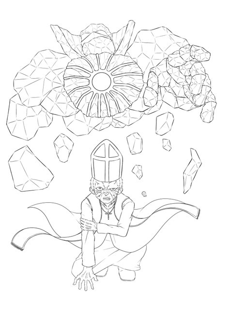 ラフラフ→ラフ→線画→現段階 あとはゴーレムじゃー!
