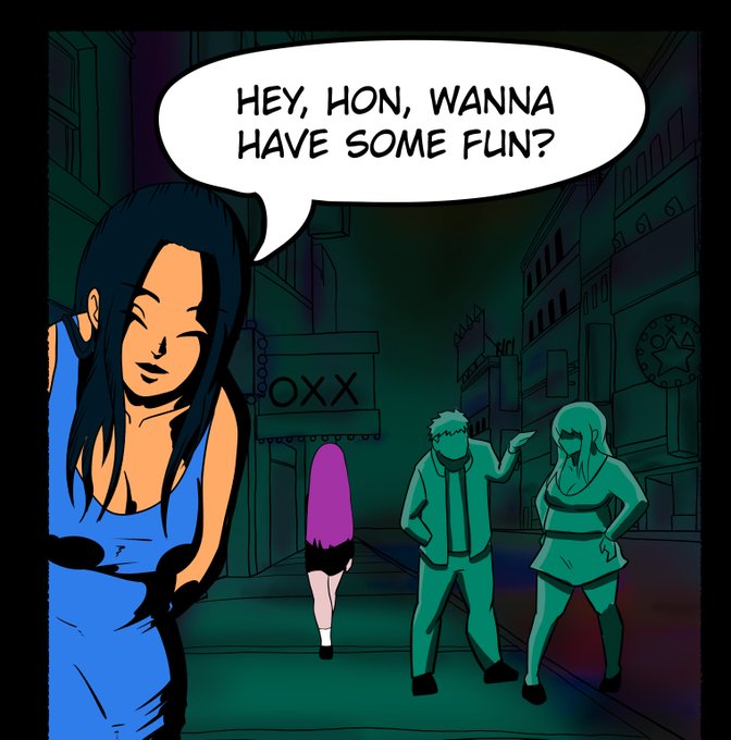What should she do? Finally she's on the way to the darkest part of the city.