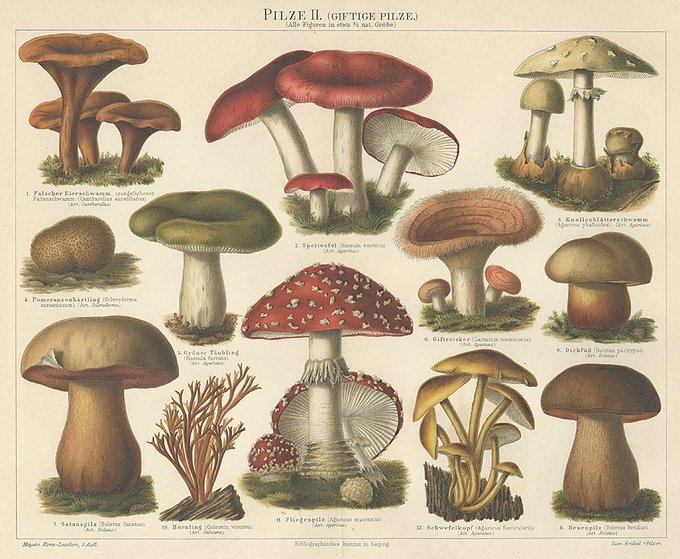 Web Shopにキノコや鉱物、鳥や昆虫などのアンティーク・リトグラフが入荷しました!ドイツで1890年頃に出版された書籍からの図版です。