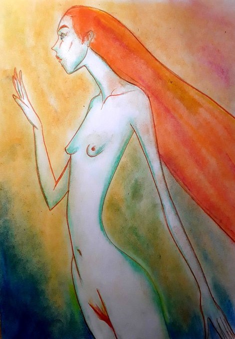 Empezar a garabatear algo con acuarelas en un cuaderno, y una forma va dando forma a otra, que alegría! #ilustracion #draw #nude #Watercolor #dibujo @ConoceArtistas @teb_art @Cattley16674205 @ArtePorDoquier_