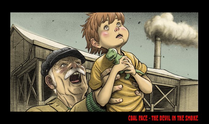 Examples of colour tinted drawings for “Coal Face: The Devil in the Smoke.”