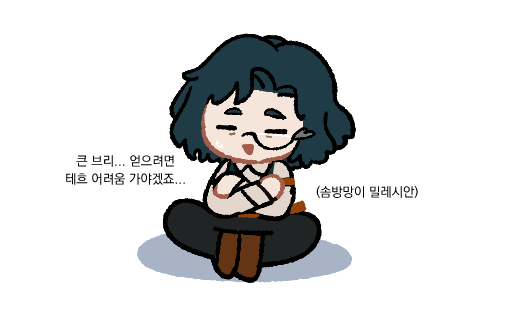체력도 기력도 없어서 빠그라져 있다... 하지만 밀.꾸(물리) 열심히 해서 강해지고 싶으니... 오늘도 성실하게 일했다 해피에린라이프...