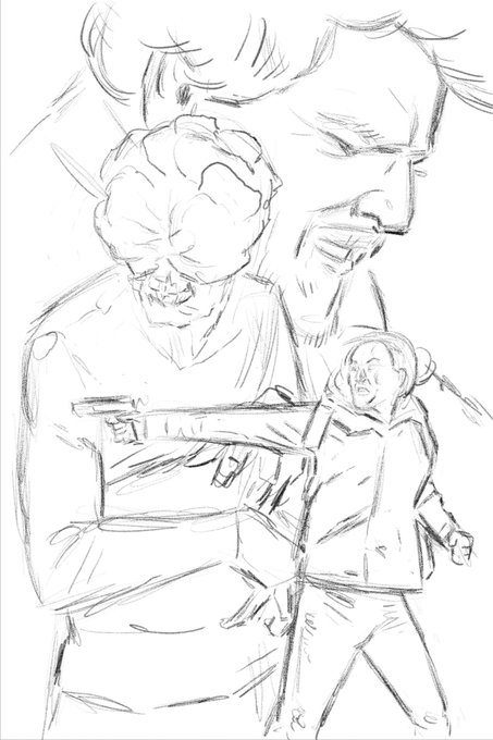 Finished Last of Us digital painting and initial sketch. First thing my daughter said was why didn't I paint a Bloater too?! Maybe next time. #LastOfUs #LastOfUsHBO @BellaRamsey #Ellie #JoelMiller #PedroPascal #fanart #digitalpainting @ArtistRTweeters @ArtMutuals