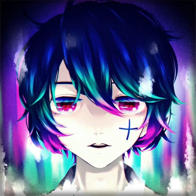 髪→青系+緑とピンクのグラデ