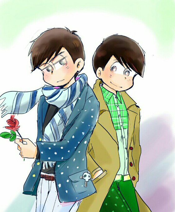 #次男会議で巡り合おう 解釈間違えてるかもしれないけど描きたかったのでカラチョロで。カラピノを拾った魔法チョロ松。魔法で青年に変えてあげるつもりが死神カラ松になってしまったけど、チョロ松を守り抜くと誓いハピエンww