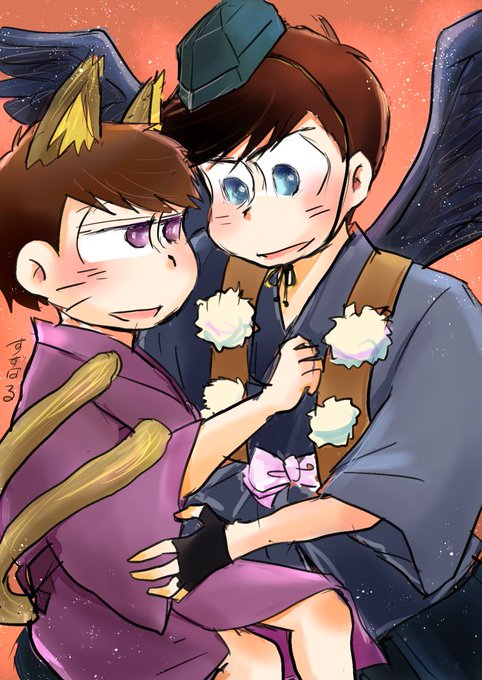 イチャイチャ妖怪カラ一のリクいただいて天狗カラ松と猫又一松描いてみたんですがどう見てもカラ一になってしまいました(;''∀'')ごめんなさい